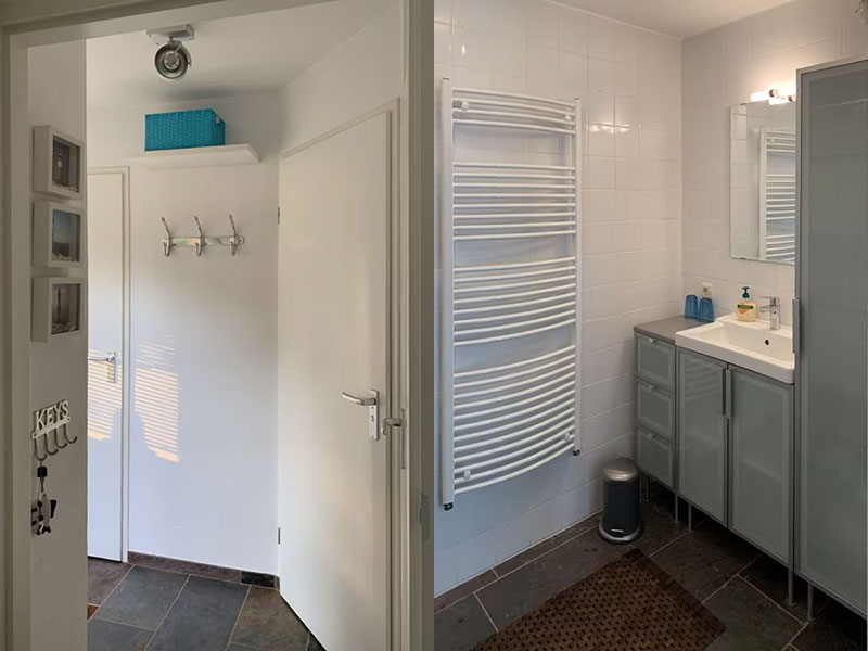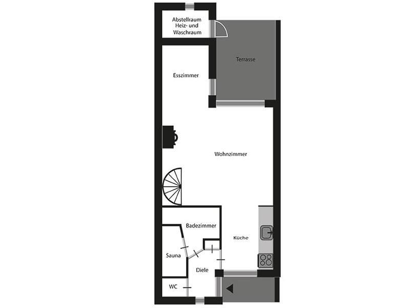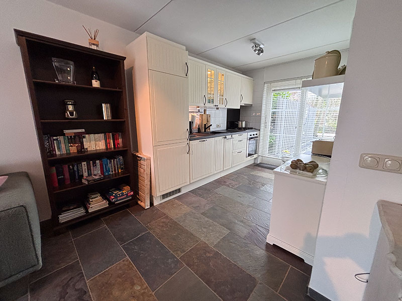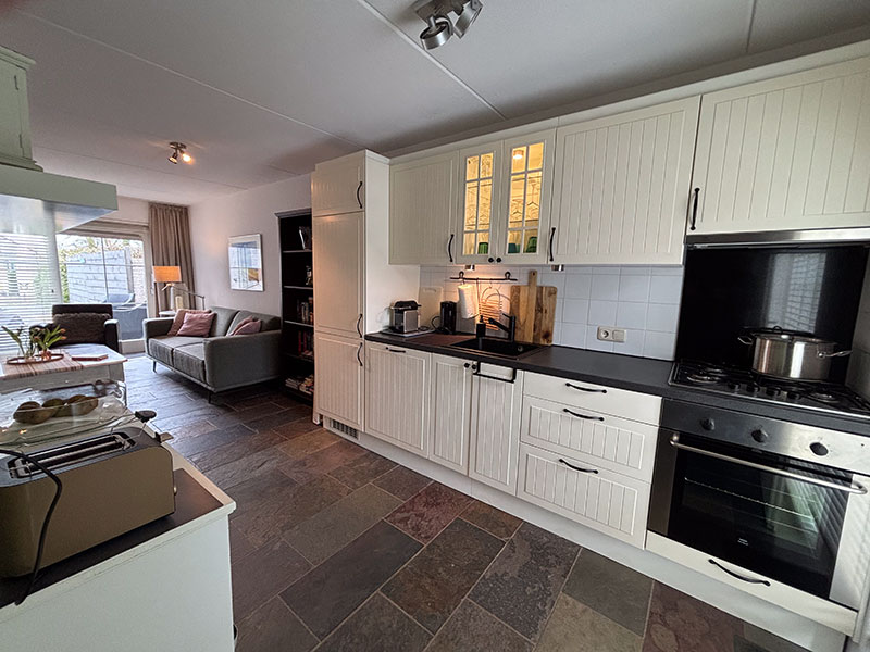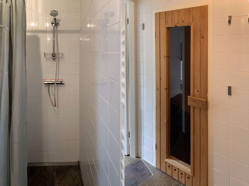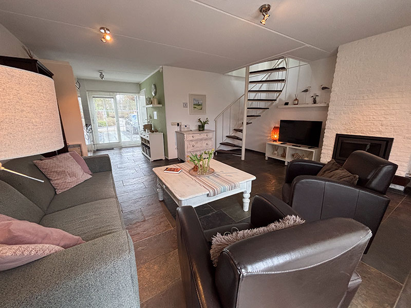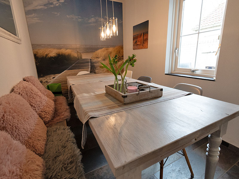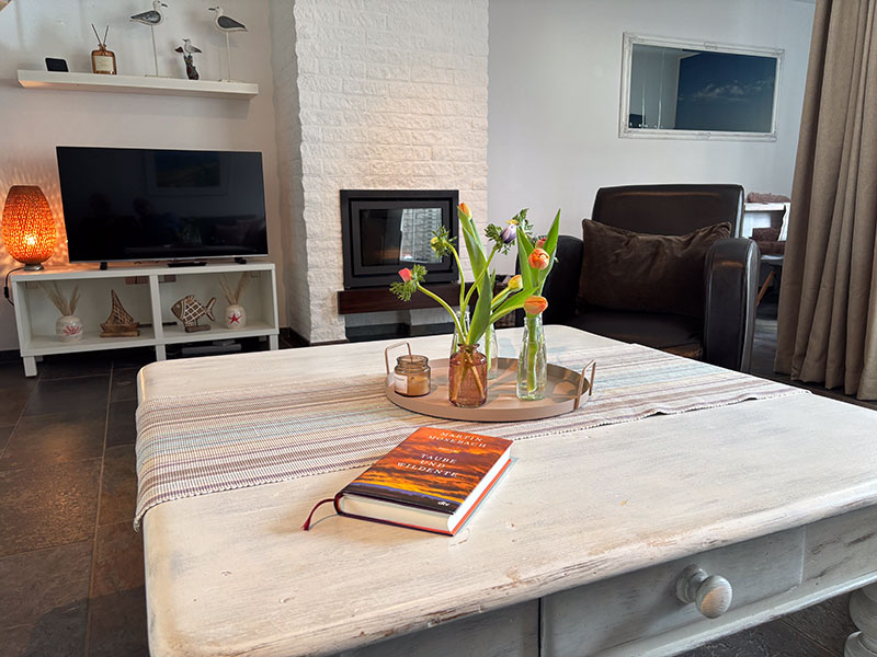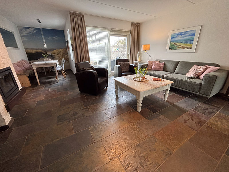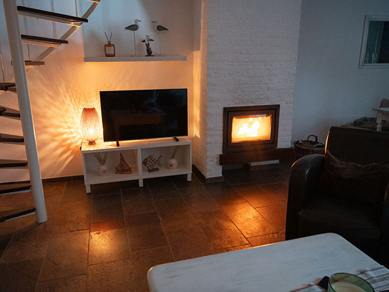 Ihr werdet euch wohlfühlen. Ein geräumiges Wohnzimmer erwartet Euch, das mit Küche und Esszimmer einen offenen Wohnbreich bildet. Im Erdgeschoss befinden sich weiterhin das Badezimmer mit bodentiefer Dusche, eine Sauna für 3 Personen und ein separates WC. Durch den mit Schiefer gefliesten Wohn- und Essbereich, die Fußbodenheizung und den geschlossenen Kamin entsteht eine gemütlich wohnliche Atmosphäre, die auch an kühlen Tagen zur Entspannung einlädt.